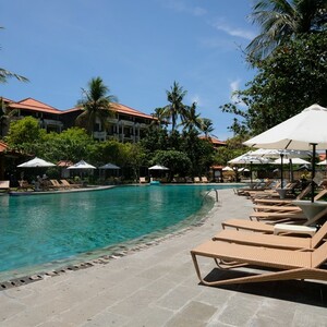 This 5 star beachfront resort resembles a water palace reflecting Balinese architectural style and elegance with lush tropical gardens and lagoons located along the white sands of Nusa Dua Beach and presents guests with a unique opportunity to experience truly enchanting Balinese hospitality.Bali Holidays