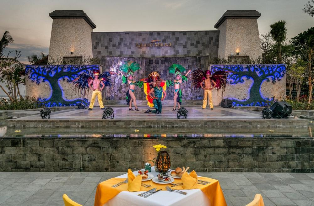 This 5 star beachfront resort resembles a water palace reflecting Balinese architectural style and elegance with lush tropical gardens and lagoons located along the white sands of Nusa Dua Beach an...
